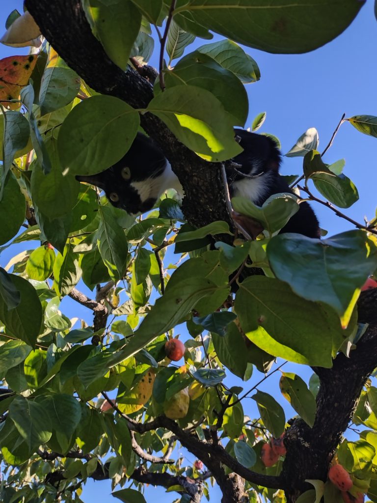 • 柿の木に登る猫