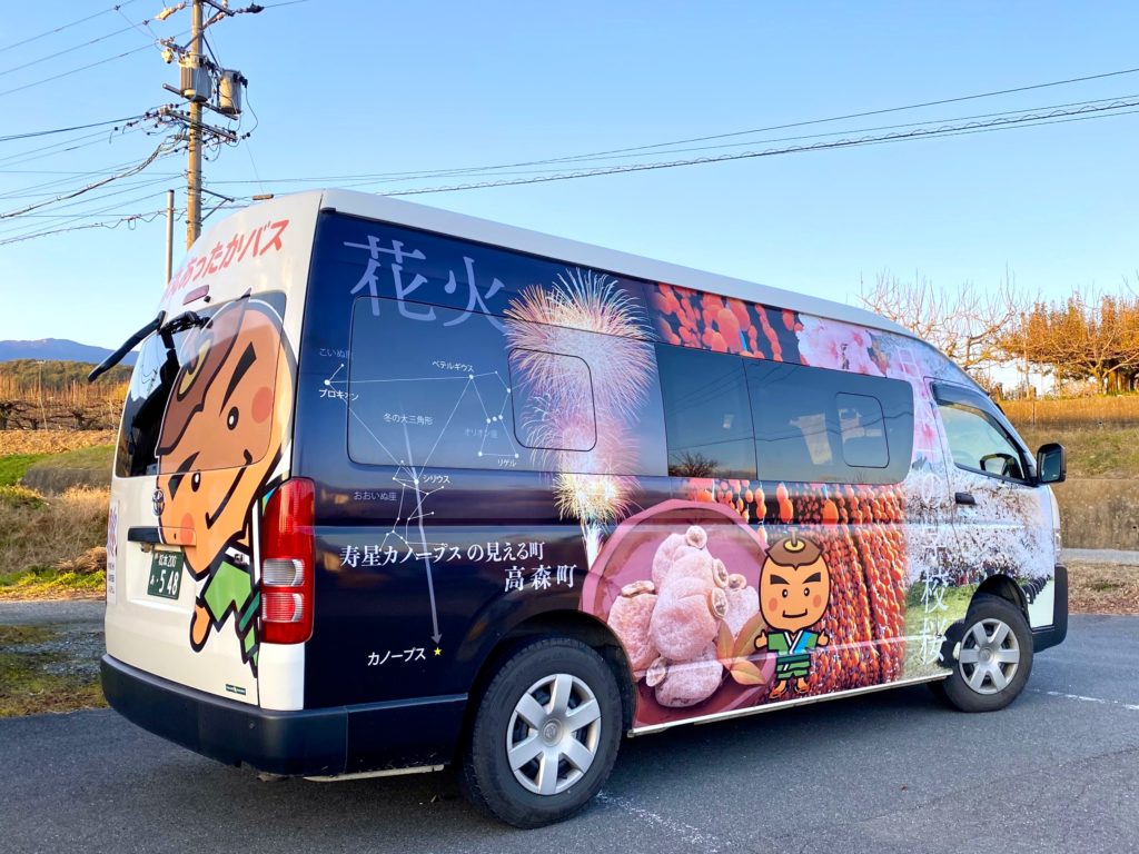 • 初めて見かけた《あったかバス》。余りに可愛くて記念にパチリ!市田柿を見事にPRする柿丸クン、笑顔でお写真OKと頷いて下さった運転手さん、ありがとうございました。